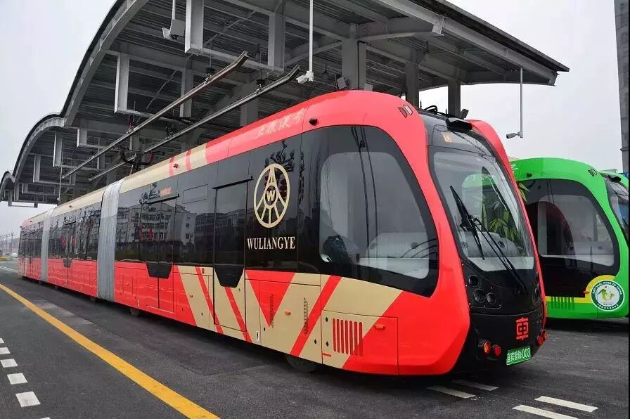 列车采用胶轮承载,利用“虚拟轨道跟随控制”技术(传感器识别路面虚拟轨道线),实现自动导向。另外列车使用锂电池进行供电,10分钟充电,可满载续航25公里